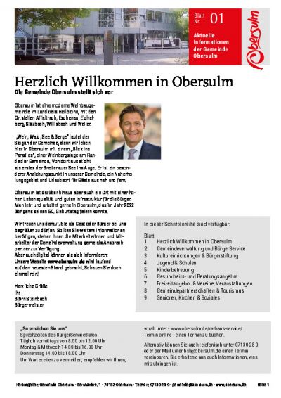 Als Bürger, Neubürger oder Gast können Sie sich anhand beigefügter PDF-Datei über „Aktuelles“ in der Gemeinde Obersulm informieren. Auch eine Übersicht der Obersulmer Rundwanderwege ist downloadbar.