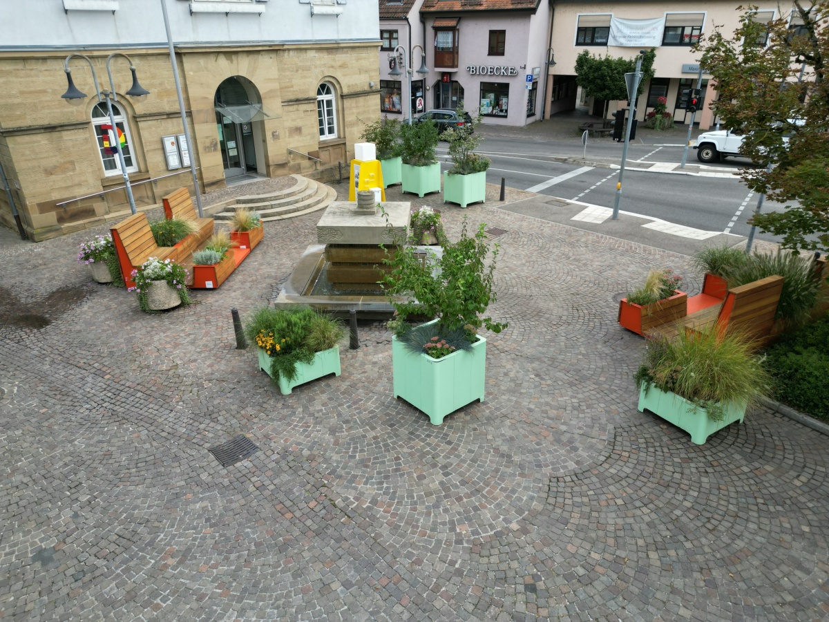 Die Sitzgelegenheiten auf dem Marktplatz Willsbach sind Teil eines temporären Stadtmöbelprojekts, das vom Land Baden-Württemberg unterstützt und gefördert wird. Wir laden Sie ein Platz zu nehmen und den Marktplatz neu zu entdecken – als Ort der Begegnung und des Austauschs.