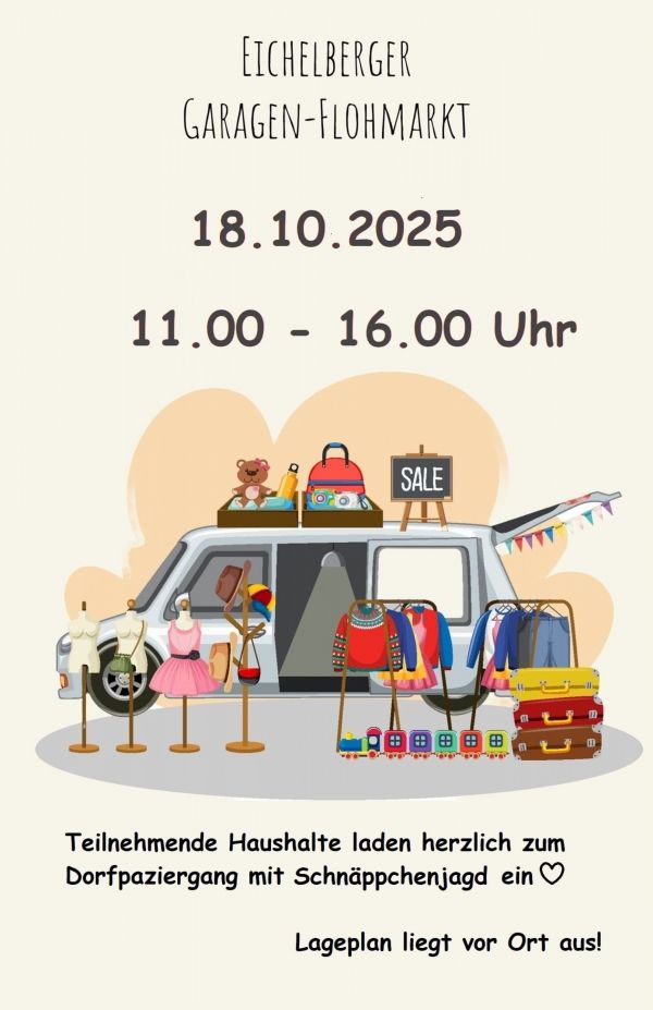 Am Samstag, 18. Oktober 2025 findet in Eichelberg ein Garagenflohmarkt statt. weiterlesen