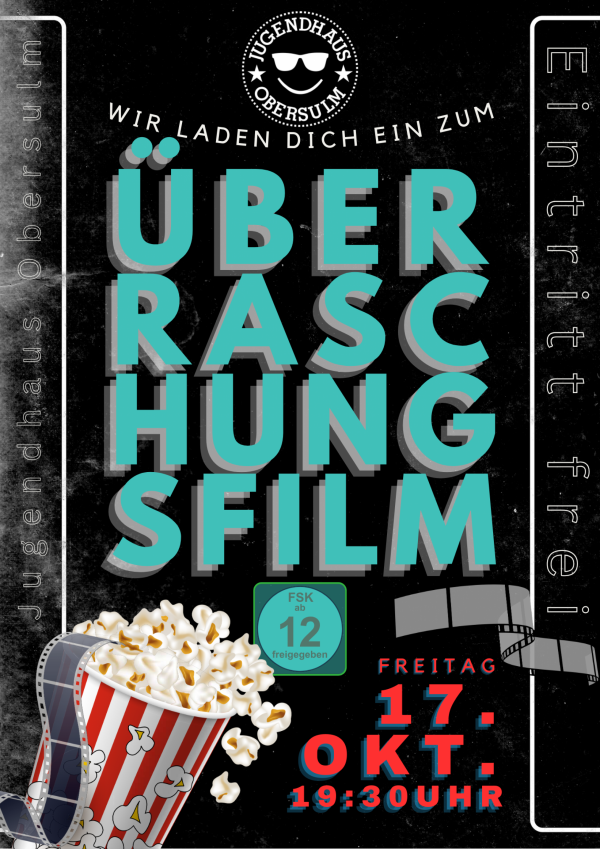 Am Freitag, 17.10.2025 wird im Jugendhaus im Willsbacher Bahnhof ab 19:30 Uhr ein Überraschungsfilm gezeigt. Aus rechtlichen Gründen dürfen wir leider nicht mit dem Filmtitel werben. Also lasst Euch überraschen! Ihr seht erst auf unserer Mega-Leinwand, welchen Kultfilm wir ausgewählt haben ... weiterlesen