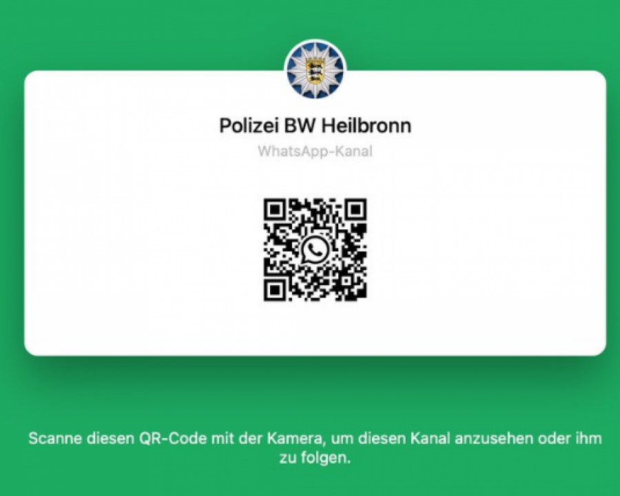 Das Polizeipräsidium Heilbronn informiert Euch ab sofort zusätzlich über den offiziellen WhatsApp Kanal.