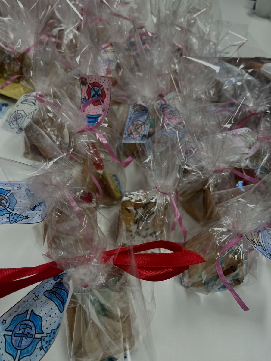 © Freiwillige Feuerwehr ObersulmUnsere Kinderfeuerwehr hat in den zurückliegenden Übungen kleine Weihnachtshäuschen aus Keksen gestaltet, die dann mit Gummibärchen, Smarties und verschiedenen Streuseln verschönert wurden.