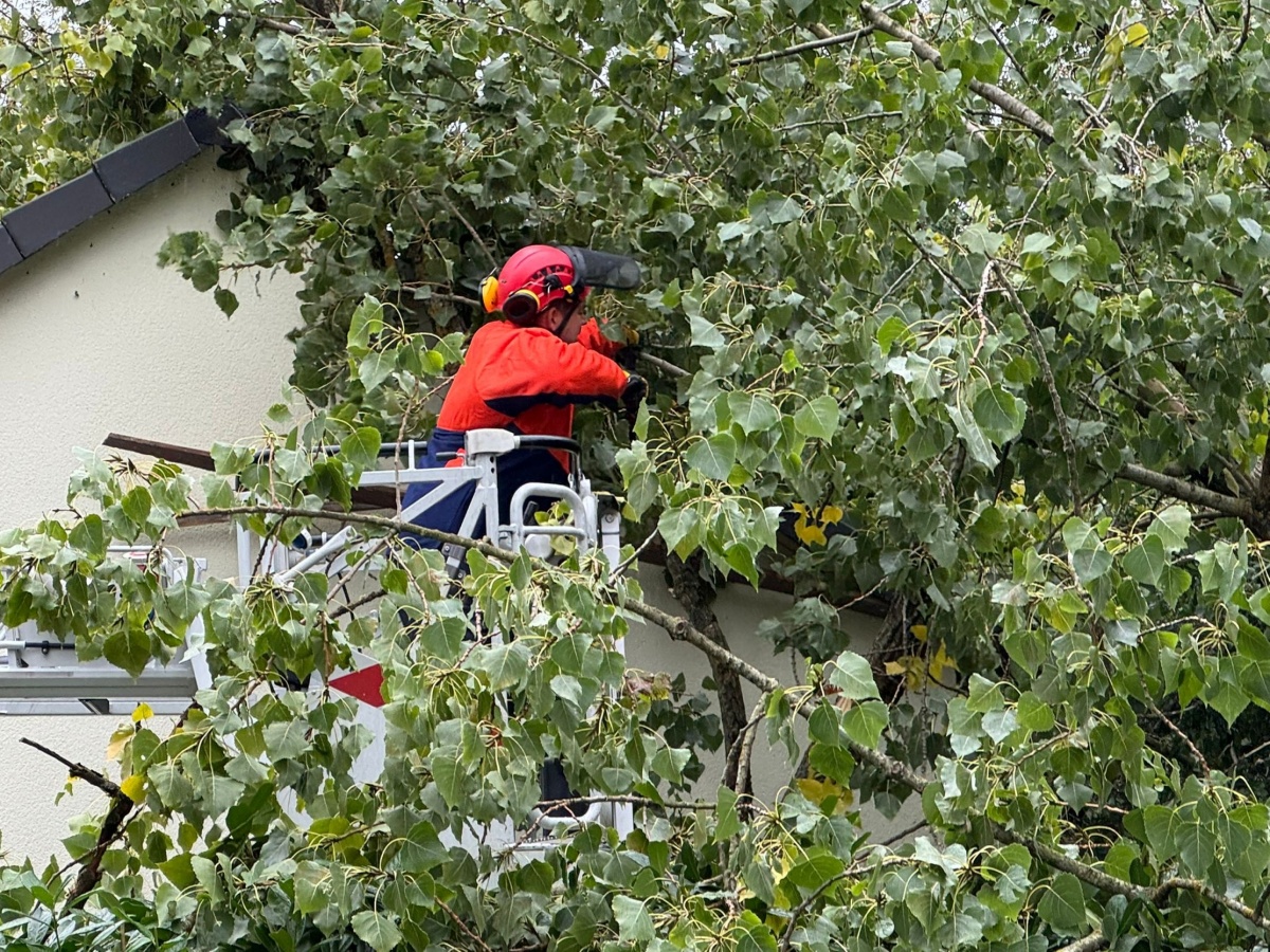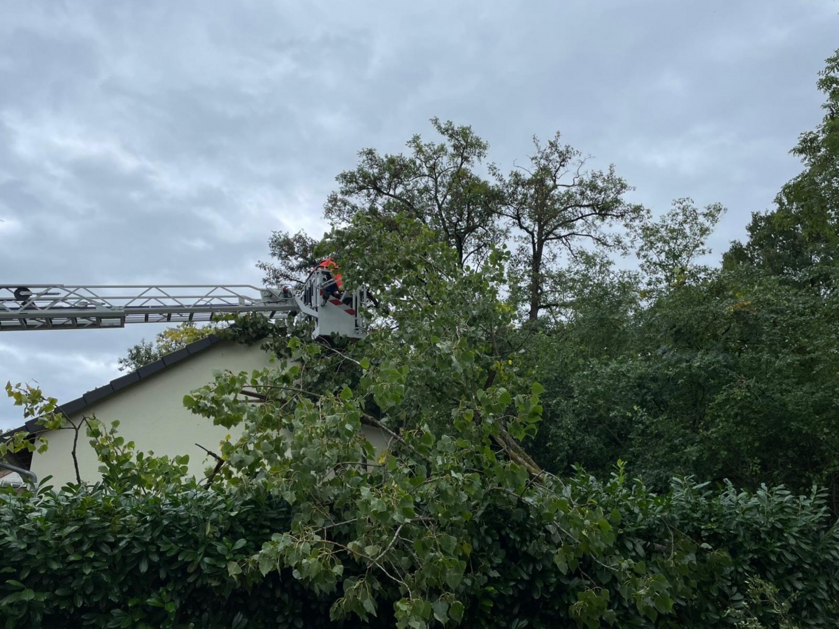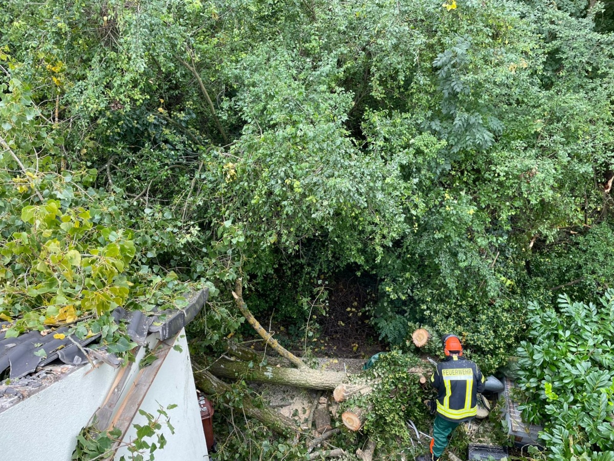 Um weiteren Schaden zu minimieren wurden die Bäume zersägt und entfernt. Die betroffenen Bauten wurden gesichtet, keine weiteren Tätigkeiten für die Feuerwehr.